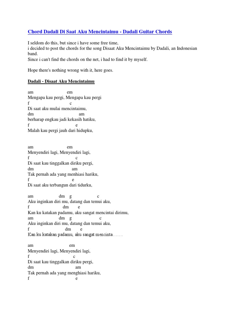 Chord Dadali Disaat Aku Mencintaimu Pdf
